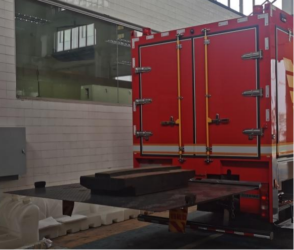 3.2 | 儲物箱:車輛兩側(cè)設(shè)有電液壓上翻門;后方1個平開門,翻門設(shè)置觸發(fā)電磁傳感器自動開關(guān)LED照明;在兩側(cè)翻門下方設(shè)有翻轉(zhuǎn)腳踏板,踏板行程由氣彈簧控制,踏板由整塊特制高強度鋁型材裁剪并與附件無焊接組裝而成、站立面防滑,每個踏板可稱重靜載荷200kg,便于取放儲物箱內(nèi)器材;儲物箱內(nèi)科學合理放置各類器材,固定牢靠、取放便捷。 |