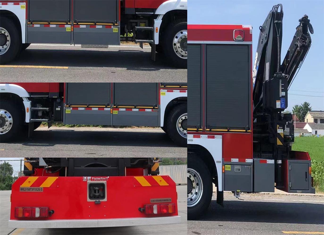 3.3 | 車(chē)后部設(shè)有登頂爬梯,能使消防人員迅速登上車(chē)頂,梯子和踏板站立面均做防滑處理;車(chē)頂設(shè)有防護(hù)欄板,車(chē)頂鋪設(shè)滑板以確保人員在車(chē)頂安全行走。 |